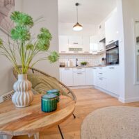 Die Küche ist vollständig ausgestattet. Vorhanden sind unter anderem Spülmaschine und Waschmaschine, sodass auch längere Aufenthalte ohne zusätzlichen Aufwand möglich sind. Die Wohnung ist insgesamt so ausgestattet, dass ein Käufer sie direkt selbst nutzen oder ohne große Vorbereitungszeit als Ferienwohnung einsetzen kann. Keine Handwerkersuche, kein Renovierungsstress.
