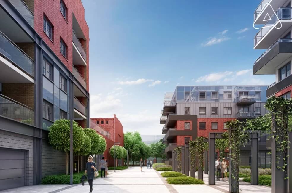 Nach Jahren des Stillstands verwandelte ein namhafter Bauträger – einer der größten und renommiertesten Bauträger in Polen – das Areal in ein modernes, architektonisch anspruchsvolles Wohnquartier. Alte Ziegelbauten, Maschinenhallen und denkmalgeschützte Fassaden wurden erhalten und geschickt mit neuen, hellen Gebäuden kombiniert. So entstand eine seltene Mischung aus Industriekultur und zeitgemäßer Wohnarchitektur – ein Ensemble, das Geschichte mit modernem Wohnen verbindet.