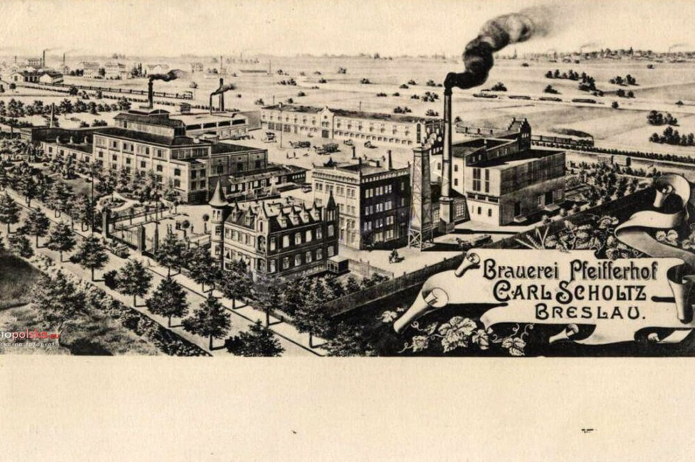 Ende des 19. Jahrhunderts gründete der Unternehmer Carl Scholtz hier die Pfeifferhof-Brauerei. Damals gehörte Breslau noch zum Deutschen Reich. Nach dem Zweiten Weltkrieg produzierte auf demselben Gelände die bekannte Piast-Brauerei ihr Bier bis ins Jahr 2004.