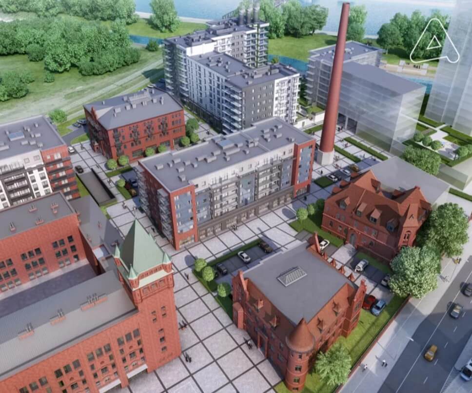 Nach Jahren des Stillstands verwandelte ein namhafter Bauträger – einer der größten und renommiertesten Bauträger in Polen – das Areal in ein modernes, architektonisch anspruchsvolles Wohnquartier. Alte Ziegelbauten, Maschinenhallen und denkmalgeschützte Fassaden wurden erhalten und geschickt mit neuen, hellen Gebäuden kombiniert. So entstand eine seltene Mischung aus Industriekultur und zeitgemäßer Wohnarchitektur – ein Ensemble, das Geschichte mit modernem Wohnen verbindet.