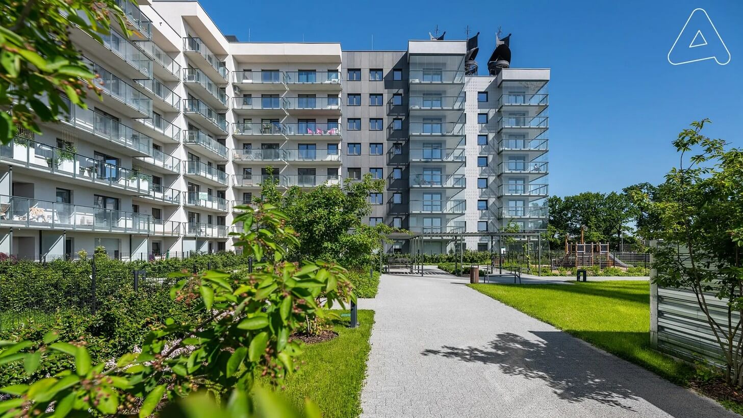 Die Struktur erinnert an ein Universitätsgelände: offen, kommunikativ und mit großzügigen Freiräumen. Alles wirkt sorgfältig geplant – von der Anordnung der Gebäude bis zur Wegeführung. Das Ergebnis ist ein Wohnquartier, das den Bewohnern eine hohe Lebensqualität bietet. Hier müssen Sie nicht mehr in den Stadtkern von Breslau fahren, um das Leben zu genießen – alles, was Sie brauchen, liegt direkt vor der Haustür.