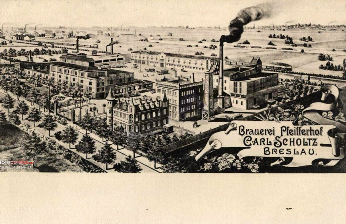 Ende des 19. Jahrhunderts gründete der Unternehmer Carl Scholtz hier die Pfeifferhof-Brauerei. Damals gehörte Breslau noch zum Deutschen Reich. Nach dem Zweiten Weltkrieg produzierte auf demselben Gelände die bekannte Piast-Brauerei ihr Bier bis ins Jahr 2004.
