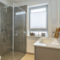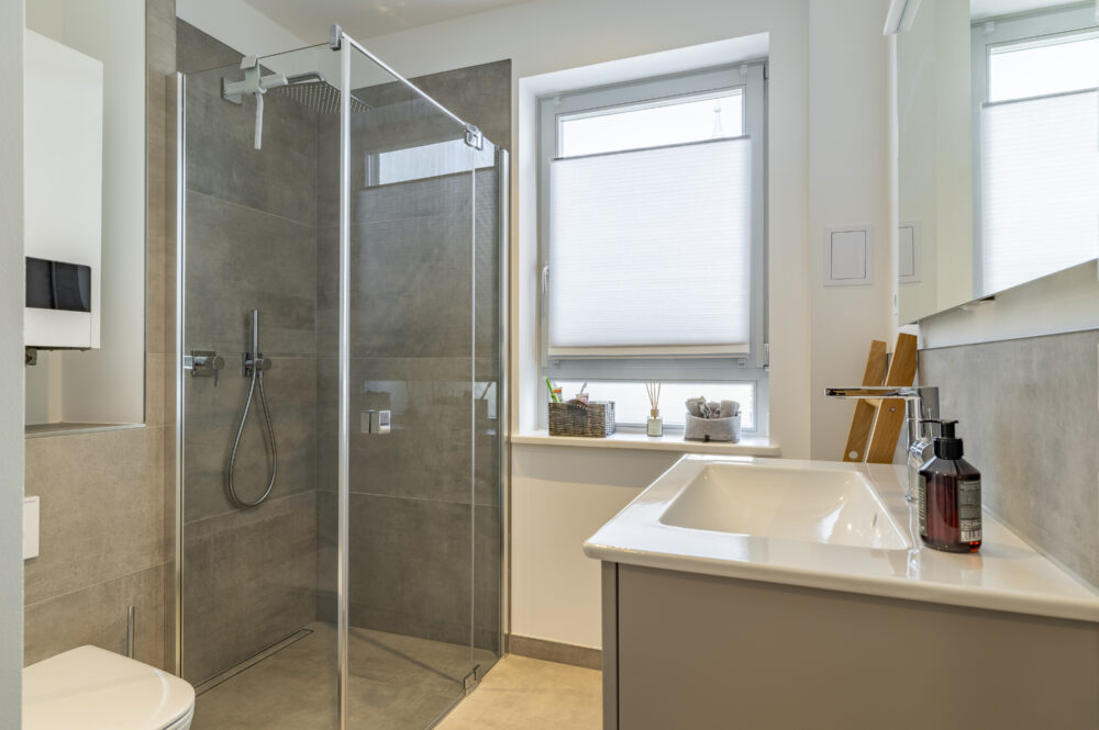 • Modernes Badezimmer mit bodengleicher Glasdusche