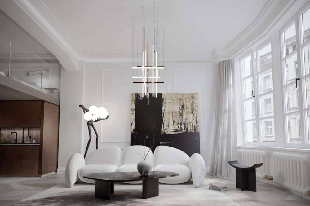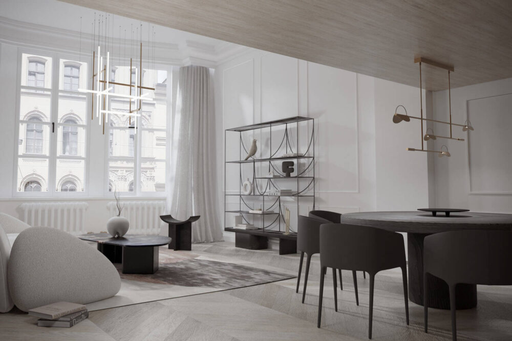 Dieses Projekt ist keine gewöhnliche Wohnung im Zentrum, sondern eine seltene Kombination aus historischer Modernismus-Architektur, außergewöhnlicher Deckenhöhe, moderner Technik und erstklassiger Kulturadresse.