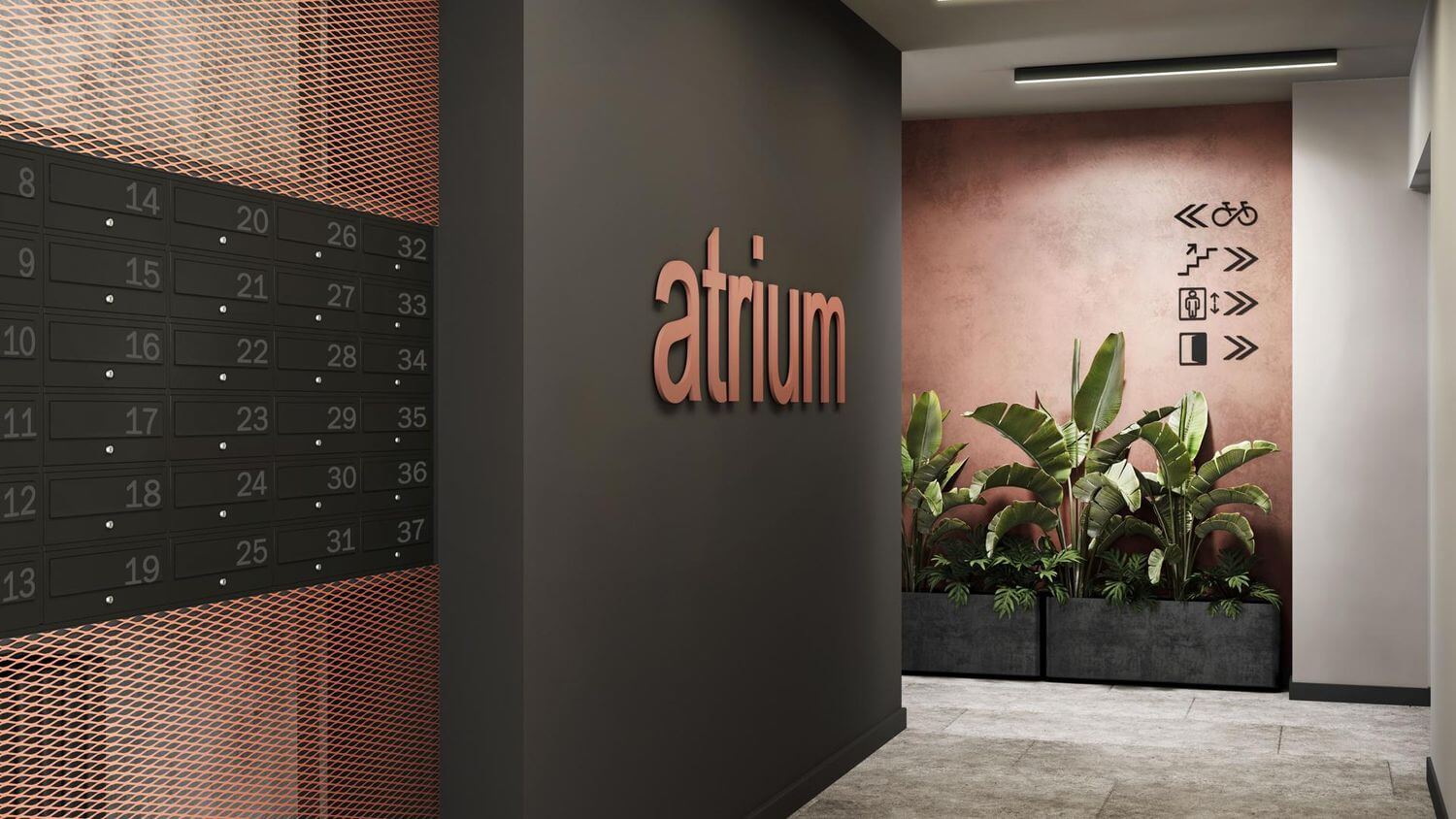 Das Gebäude umfasst sich über acht oberirdische Etagen sowie zwei Tiefgaragengeschosse. Die Grundrisse sind bewusst flexibel gestaltet und reichen von kompakten Einzimmerwohnungen bis zu großzügigen Vierzimmerwohnungen.
